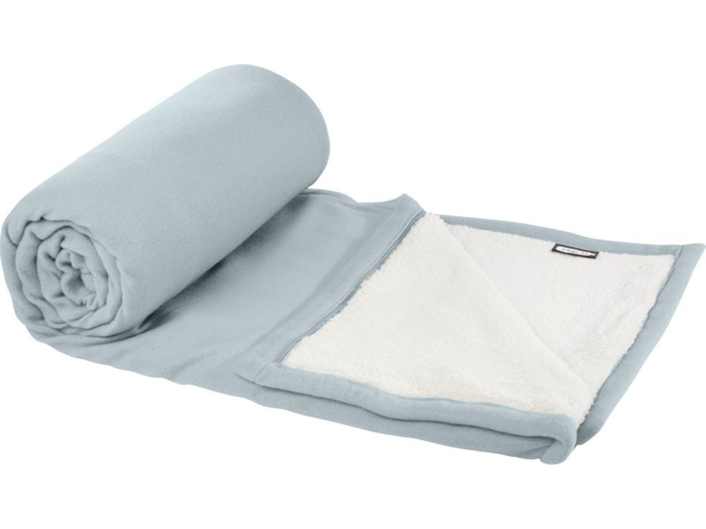 Ультрамягкий плед из флиса из вторичного ПЭТ и искусственного меха, 180 г/м2. Флис100% переработанный полиэстер. Поставляется с сумкой для переноски из вторичного ПЭТ 190T с застежкой на шнурке. Размер сумки d18 х 40 см. Упаковано в полиэтиленовый пакет из переработанного материала. -