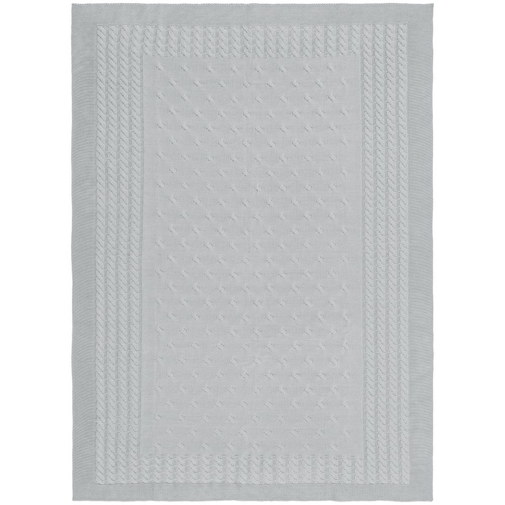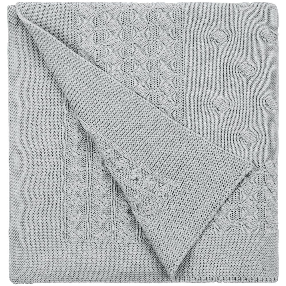 Модель: однотонный плед с фактурной вязкой, которая позволяет сделать его воздушным и объемным. Чередуя различные типы петель на гладком полотне, можно вывязать любую графику — логотип, текст, товарный знак.