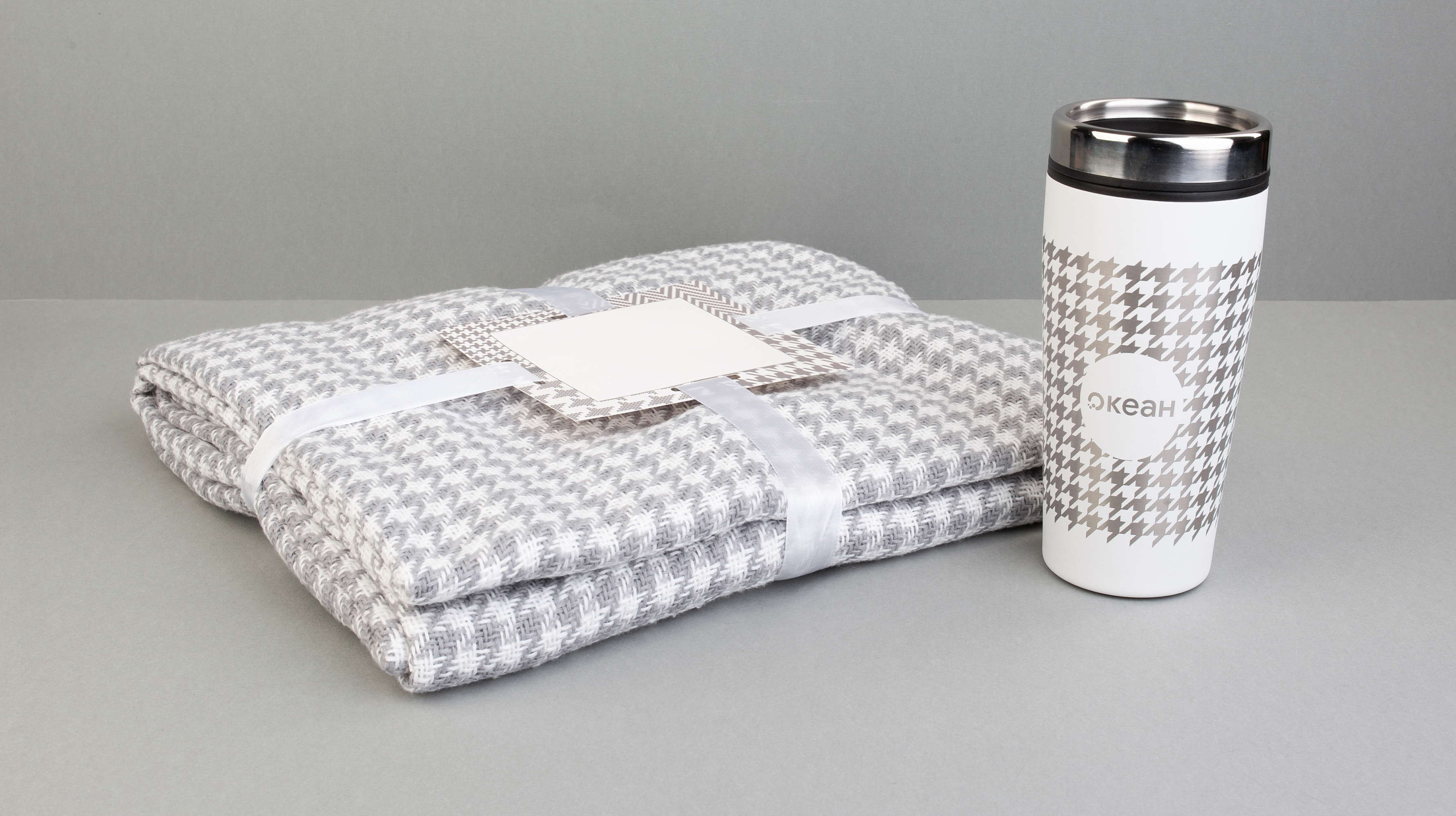 Бахрома по короткой стороне. Плед перевязан атласной лентой с картонной биркой в центре. Размер в собранном виде 32 х 38 см.
