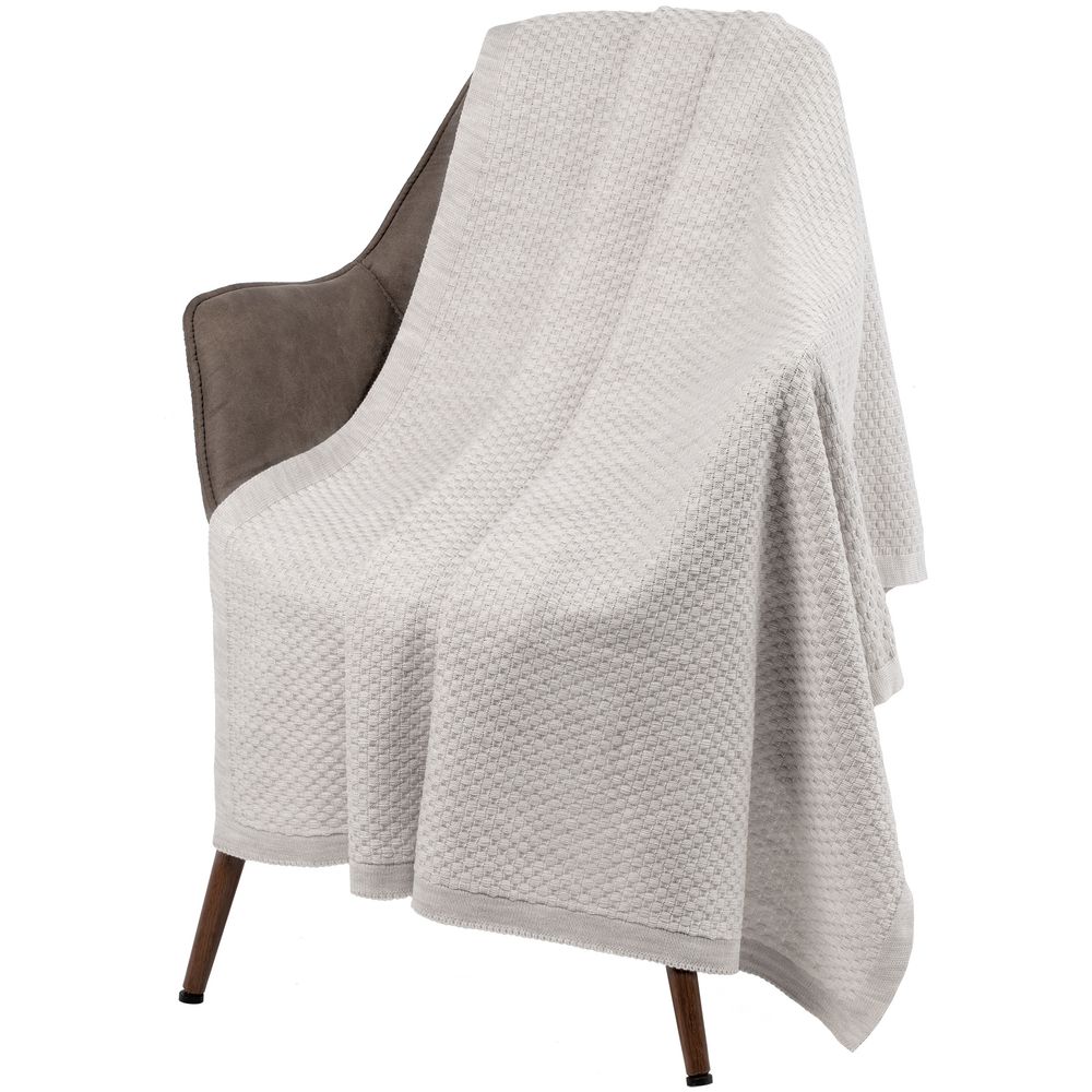 Однотонный плед рельефной вязки.