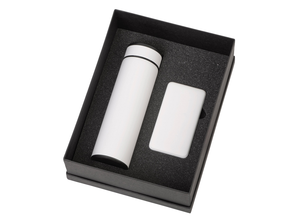 термос - нержавеющая cталь с покрытием soft-touch, внешний аккумулятор- пластик с покрытием soft-touch,