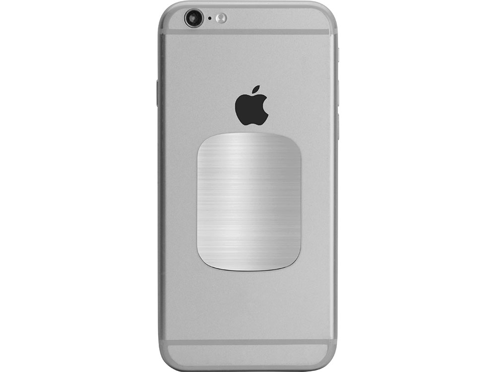 Магнитный держатель для телефона крепится к вентиляционной решетке автомобиля при помощи прищепки, которая снабжена прорезиненными вставками для плотного сцепления с поверхностью. Также в комплекте идут 2 самоклеящиеся стальные пластины. Они крепятся к смартфону.