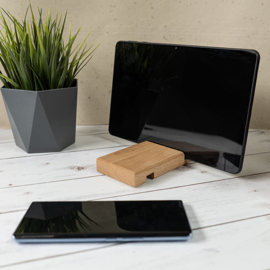 Подставка для смартфона, две разные выемки позволяют установить в держатель смартфон как в плотном бронечехле, так и без него, при этом смартфон будет хорошо зафиксирован, выполнен из премиум материала бук. Материал отличается следующими преимуществами: Прочность - премиум материал дерева Бук Безопасность - обладает противомикробными свойствами, не вызывает аллергических реакций Простой в уходе - моется теплой водой, допускается использование средств для мытья посуды Экологичность - натуральное и безопасное сырьеУдобство - устойчив на любых плоских поверхностях, включая диваны и кровативозможно привезти под заказ тираж от 1000 шт -