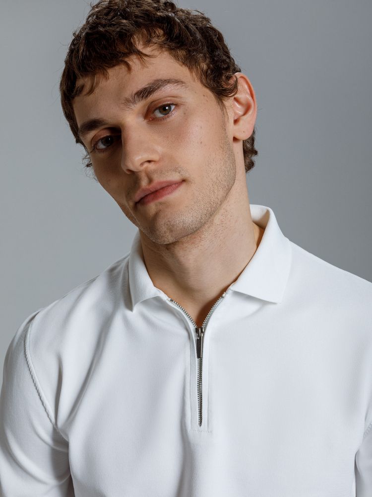 Модная рубашка поло из гладкого полотна идеально садится по фигуре. Металлическая молния на планке делает образ современным и лаконичным.