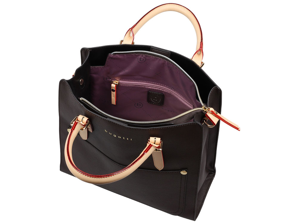 Внутренняя организация: основное отделение на молнии с карманом на молнии и 2 открытыми карманами, 2 боковых отделения с магнитными застёжками
