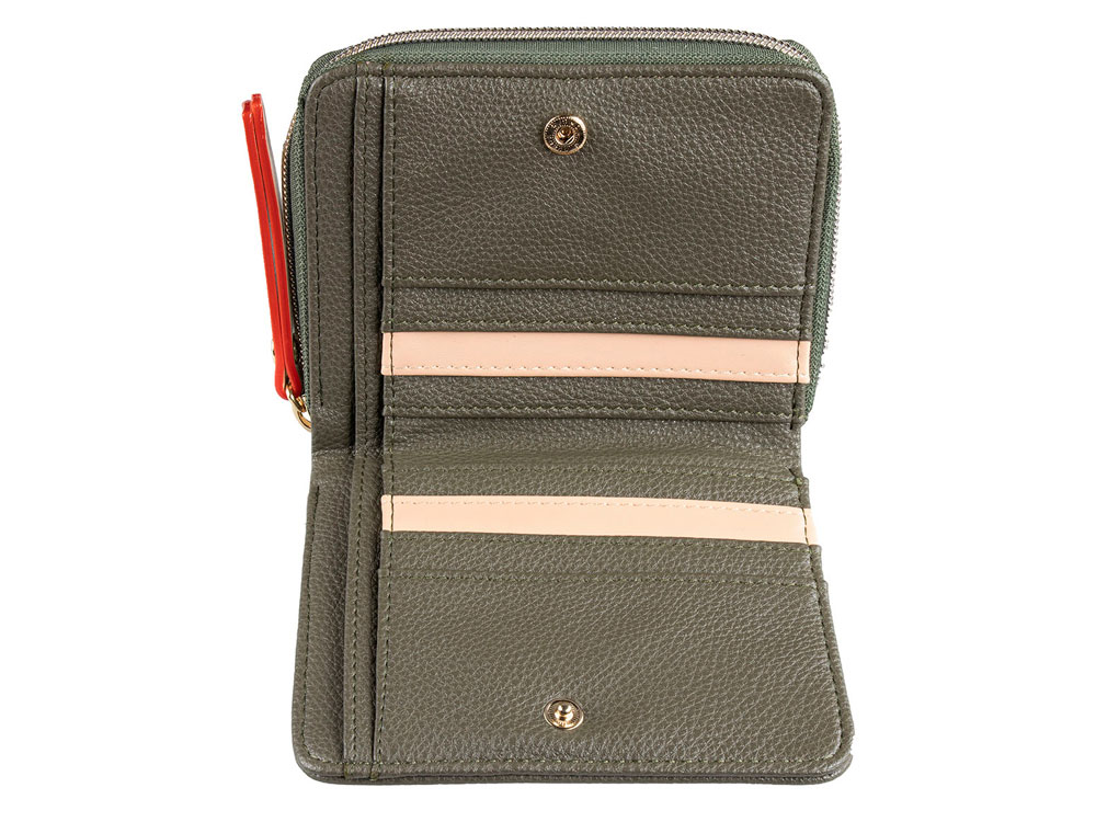 Функциональная организация: 2 отделения для монет, 2 отделения для банкнот, 8 слотов для карточек, карман