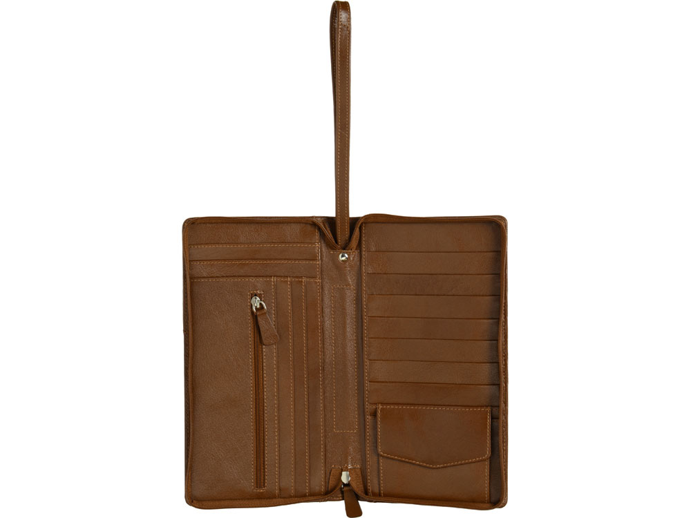 Стильное трэвел-портмоне из натуральной кожи позволит организоват хранение визитных и пластиковых карт. В портмоне предусмотрены карманы под купюры. Портмоне прекрасно подойдет для подарка женщинам и мужчинам. -