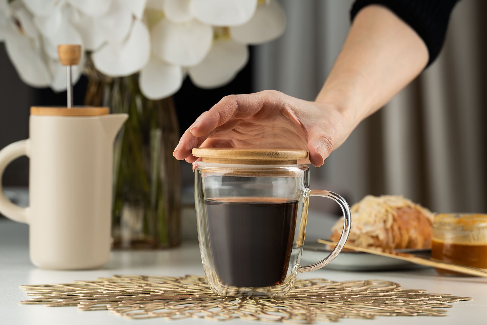 Кружка с двойными стенками Kupla подходит для подачи как горячих, так и холодных напитков. Благодаря бамбуковой крышке напиток в кружке долго останется нужной температуры.