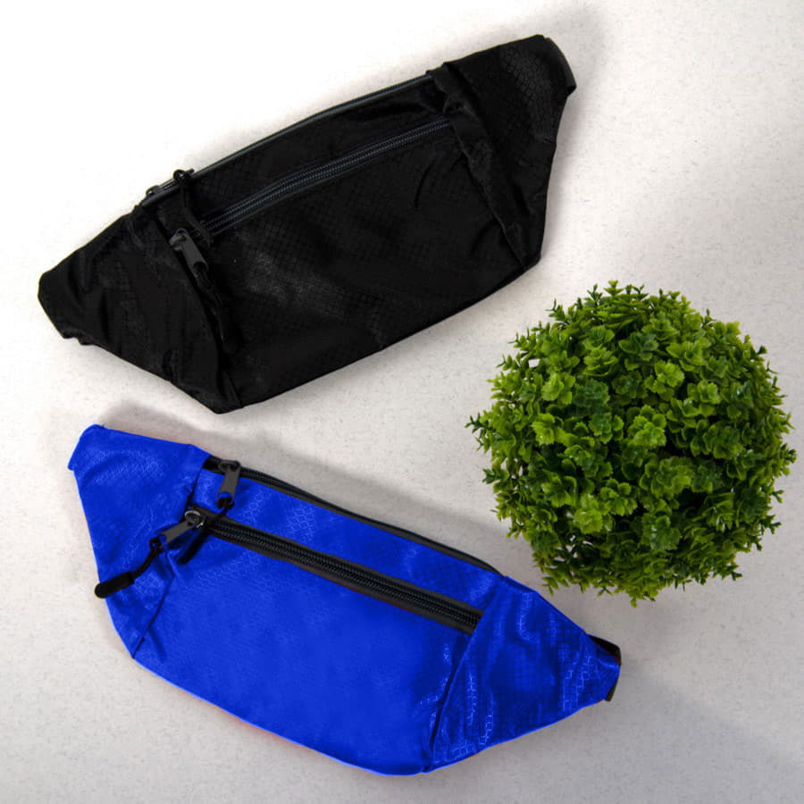 Поясная сумка из интересного материала рипстоп отлично подойдет для прогулок или занятий на свежем воздухе. Рипсто́п (от англ. ripstop) — тип ткани, в структуре которого использована упрочнённая армированная нить из нейлона. Сумки из такого материала прочные, но легкие, с интересным дизайном поверхности материала, напоминающим медовые соты. Сумка с двумя отделами на молнии для удобства хранения небольших, но важных вещей. Крепится на регулируемую широкую стропу с пластиковой застежкой. Упакована сумка в прозрачный пакет -