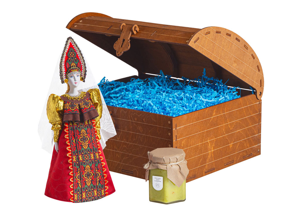 Роскошная упаковка: деревянный сундук с изящным замочком превращает вручение подарка в особый ритуал. Дополнительное брендирование шильдом спектрум делает презент эксклюзивным и памятным.