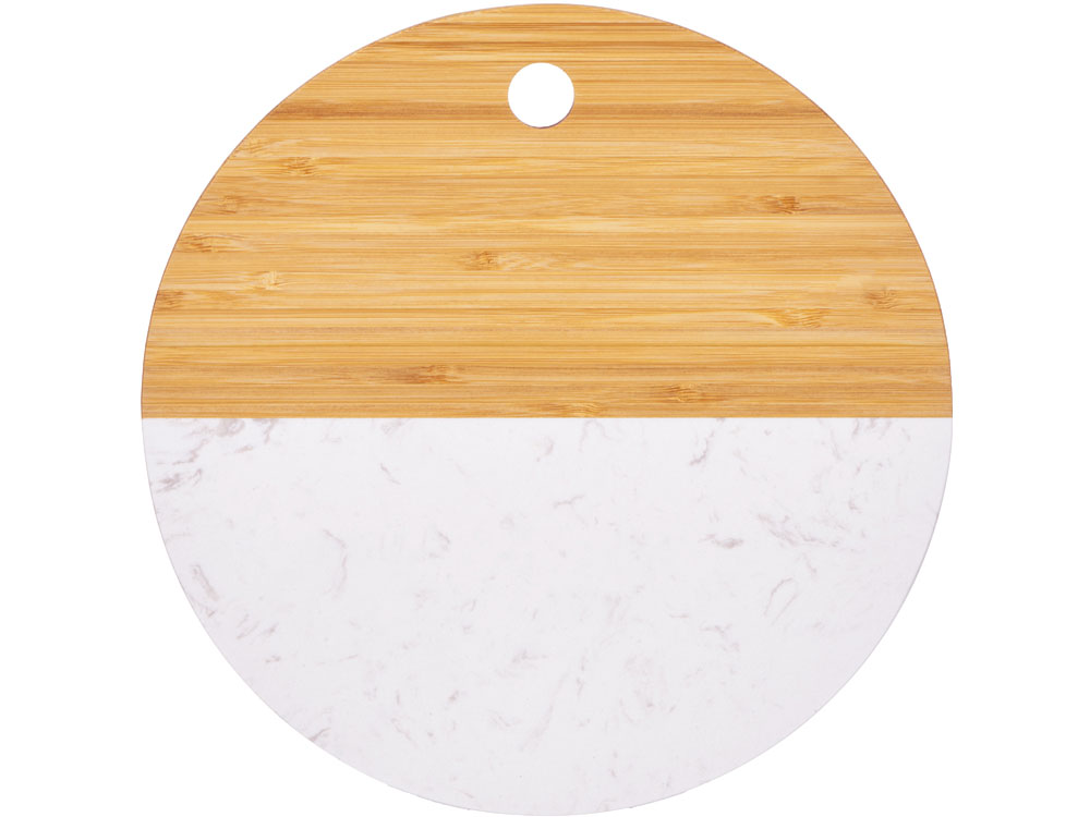 Разделочная доска от Eat&Bite состоит наполовину из бамбука, а вторая половина выполнена из мрамора. Это позволяет не только использовать доску для разделки, но и оригинально подать закуски, сыры или нарезки, зонируя виды снеков.