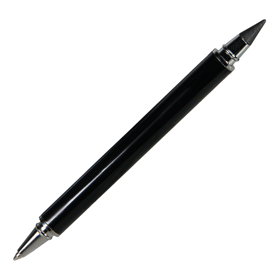 Функциональная модель 2 в 1. С одной стороны - это ручка, а с другой - вечный карандаш. Идеальный выбор рациональных людейкак для промо мероприятия, так и в качестве бизнес подарка. Так как гораздо выгоднее приобрести один пишущий инструмент, в котором будет и ручка, и вечный карандаш, нежели покупать их по отдельности.• Цвет, близкий к Pantone Black• Размер φ 10 x 136 мм• Корпус и колпачки из алюминия• С одной стороны ручка, с другой - вечный карандаш• Длина линии письма ручки 800-1000 м• Пулевидный пишущий узел 1.0 мм• Цвет чернил синий• Сменный стержень Parker type• Упаковка: транспортный картонный футляр, претензии по качеству транспортировочной упаковки не принимаются• Виды нанесения: гравировка -