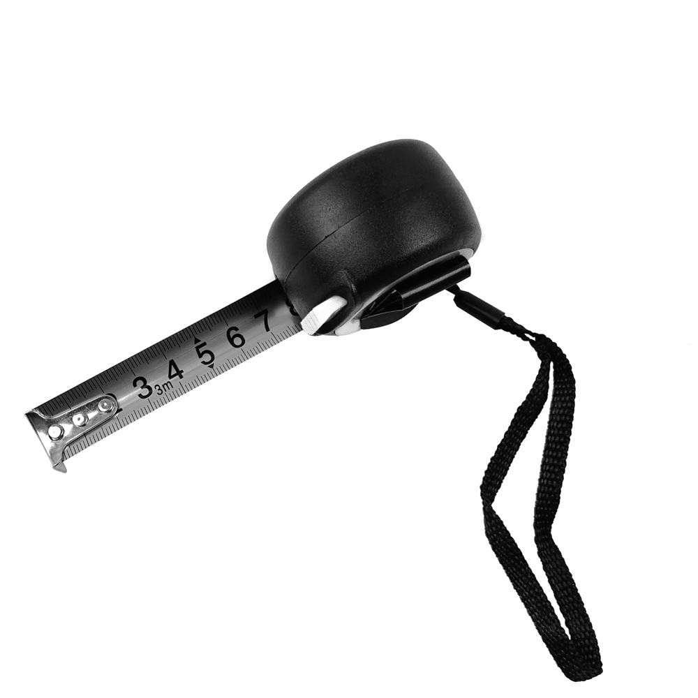 Практичная рулетка. Оснащена удобным ремешком и зажимом на ремень. Размер ленты/рулетки: 3 м х 19 мм / 33 x 53 мм.- Виды нанесений: Тампопечать, Шильд