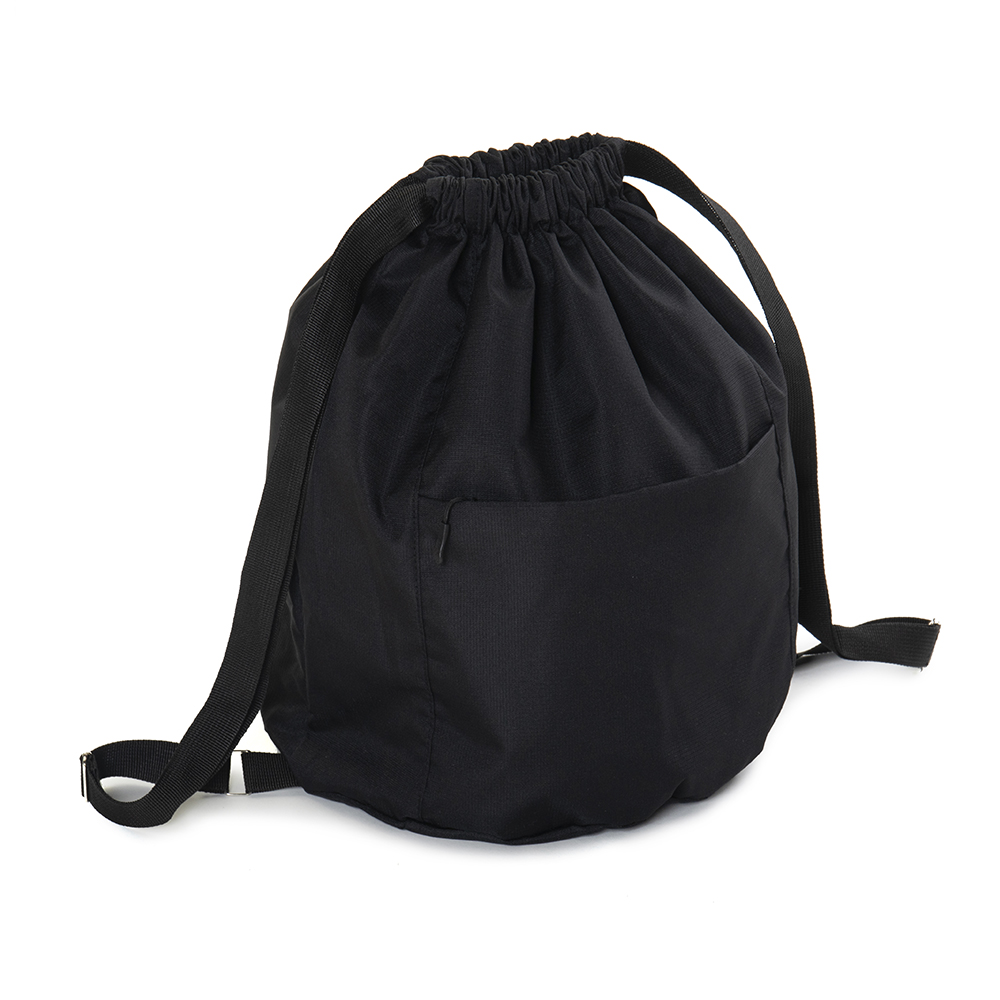 Рюкзак-мешок без подклада имеет основное отделение затягивающееся вверху на стропу-лямку и полукруглым дном, внутреннее швы рюкзака окантованы тесьмой. Снаружи рюкзак имеет большой карман на молнии. Лямки регулируются за счет рамок. -