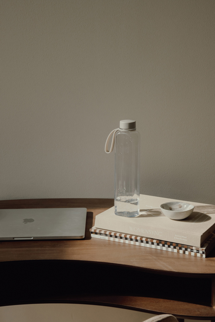 Стильная бутылка для воды с удобным силиконовым держателем. Идеально подходит для любого случая — будь то офис или спортзал. Отличается простым минималистичным дизайном, который не только придает ей современный и элегантный вид, но и позволяет легко брать ее с собой даже в небольших рюкзаках и сумках.