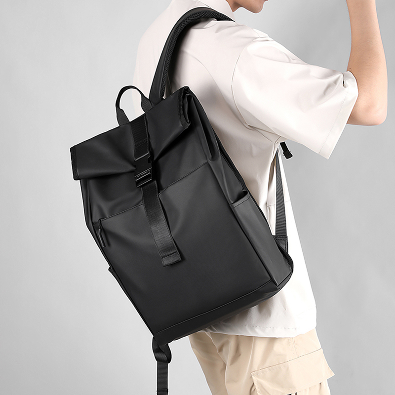 Стильная, элегантная и особо защищенная версия городского ролл-топ рюкзака ALVORT Его особенности - рюкзак сделан из особо прочного полиэстера покрытого водо- и грязезащитной полиуретановой пропиткой, устойчивой к широкому диапазону температур. Одно большое отделение закрывается на липучки-велькро и фиксируется тесьмой с защёлкой-фастексом и возможностью регулирования длины под объём наполнения рюкзака. По бокам два открытых кармана для бутылки, зонта и прочих аксессуаров. На передней стенке объёмный карман на молнии. Сбоку вход в уплотнённое отделение на молнии для ноутбука 15 дюймов. Внутри большой карман на молнии из сетки для аксессуаров и ЭКСКЛЮЗИВНАЯ ОПЦИЯ - специальный карман-сетка ДЛЯ АРОМАСАШЕ. Двойное уплотнение задней стенки распределяет вес и снижает нагрузку на позвоночник. Уплотнённые плечевые ремни регулируются по длине. 3D-сетка на подкладке плечевых ремней предотвращает скольжение и обеспечивает дополнительную вентиляцию и комфорт при контакте с кожей и одеждой. Размер: 32*46 (56 в развёрнутом виде)*14 см Материал товара: Полиэстер с водо- и грязенепроницаемой пропиткой Плотность: 600D Рекомендуемая максимальная нагрузка: не более 10 кг. Вместимость: 17 л. Вес: 0.8 кг. Возможна замена пуллеров (арт. 4093) в семи вариантах цвета и нанесение на них УФ печати в количестве 2 шт Возможна установка шильды (арт. 4090, 4091, 4092) на передний карман и нанесение на неё гравировки / тампопечати- Виды нанесений: Термотрансфер DTF, Установка Шильды