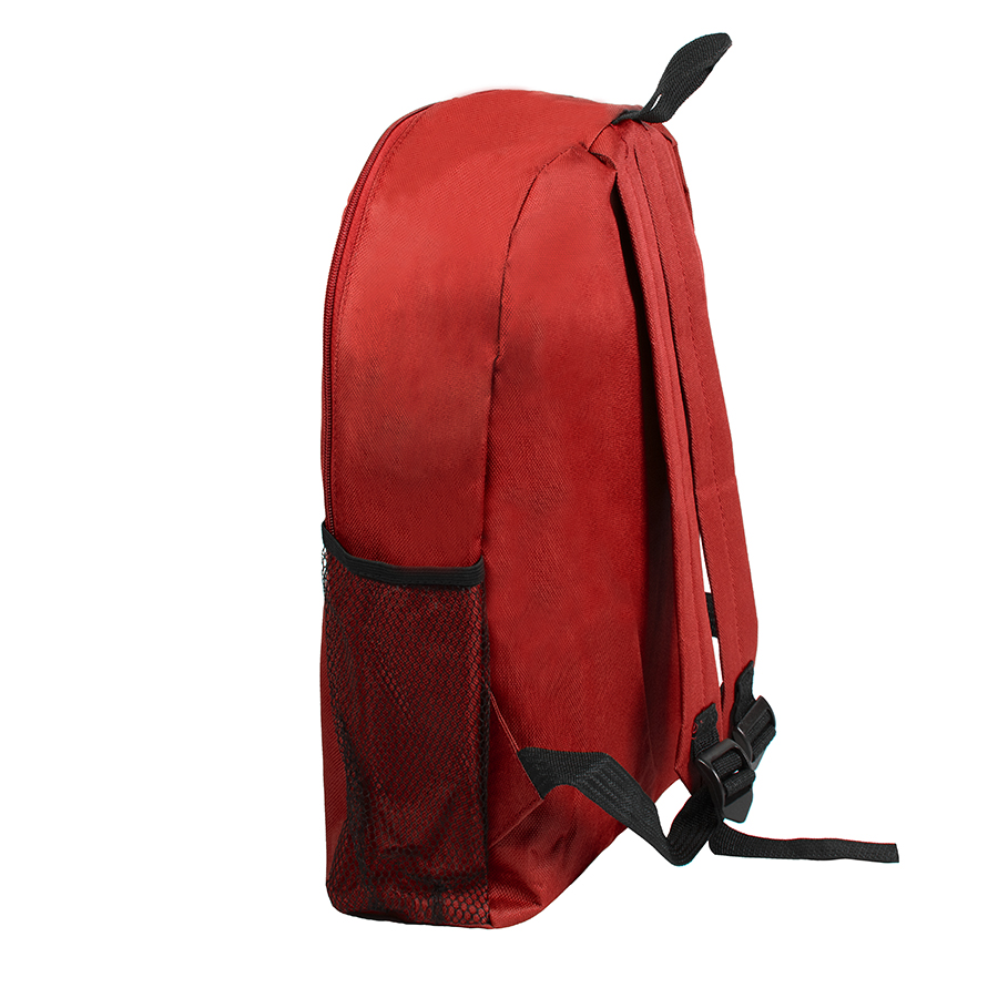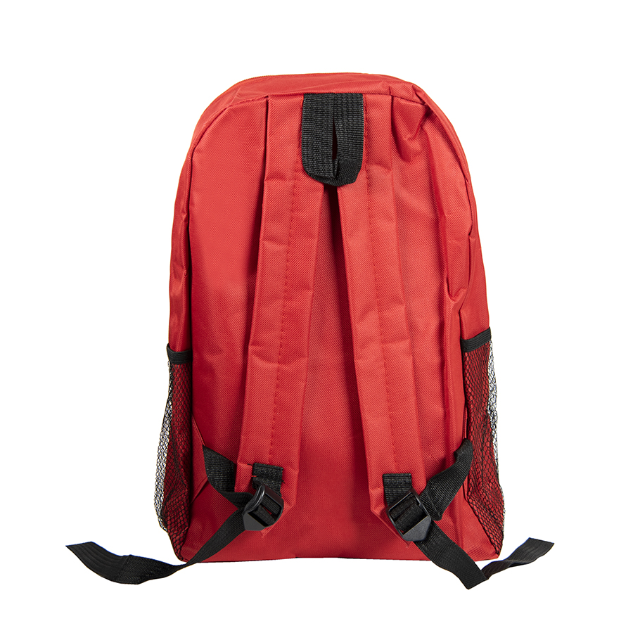 Цвет, близкий к Pantone Red 186 C Легкий промо-рюкзак из прочного полиэстера 600D с одним основным отсеком и внешним карманом на молнии. Два боковых кармана из сеточки на резинке добавят места для бутылочки с водой или хранения мелких предметов. Регулируемые мягкие лямки помогут сделать рюкзак с вещами почти невесомым. -