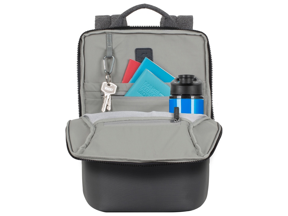 • Отделение для ноутбука защищено водостойкой молнией, имеет мягкие стенки, карман для планшета до 10.1. Дно имеет дополнительную мягкую вкладку для защиты гаджета.