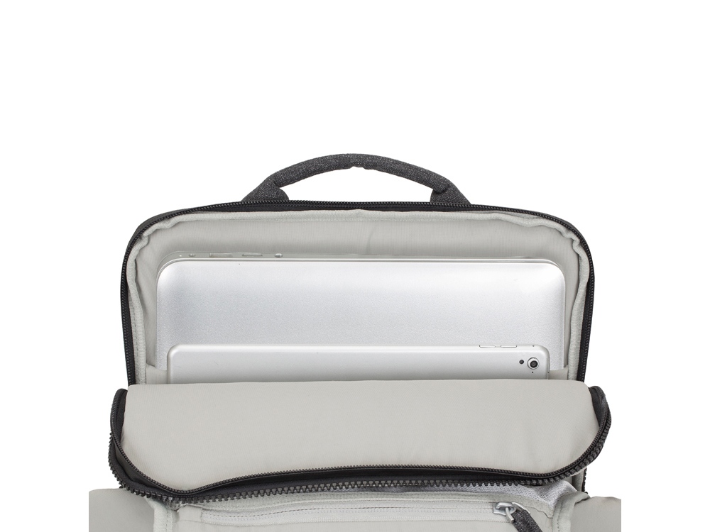 • Отделение для ноутбука защищено водостойкой молнией, имеет мягкие стенки, карман для планшета до 10.1. Дно имеет дополнительную мягкую вкладку для защиты гаджета.