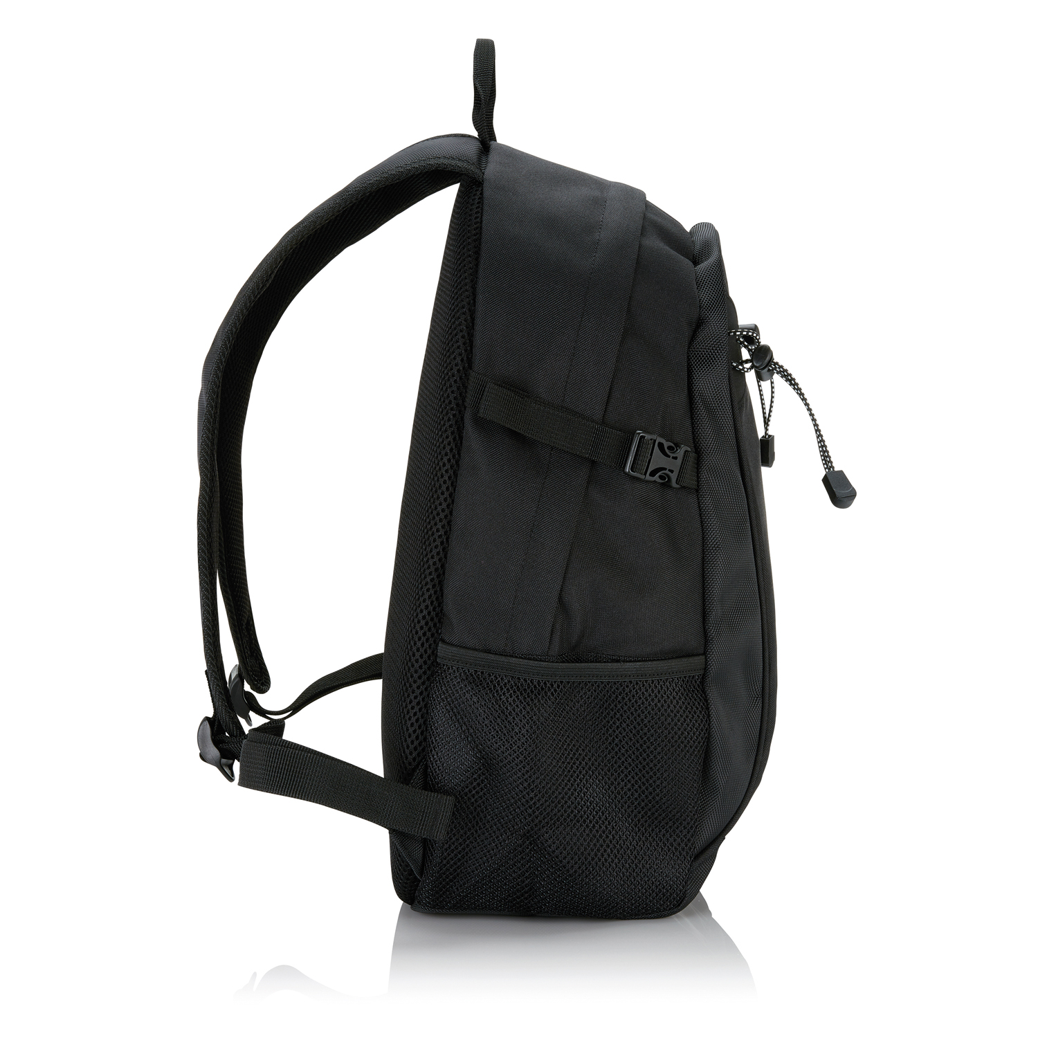 Рюкзак для путешествий Swiss Peak изготовлен из прочного полиэстера двух видов: 600D и 1680D. В рюкзаке предусмотрено одно большое отделение, уплотненная удобная спинка, боковые карманы-сетка для бутылки воды или других мелочей. Не содержит PVC.