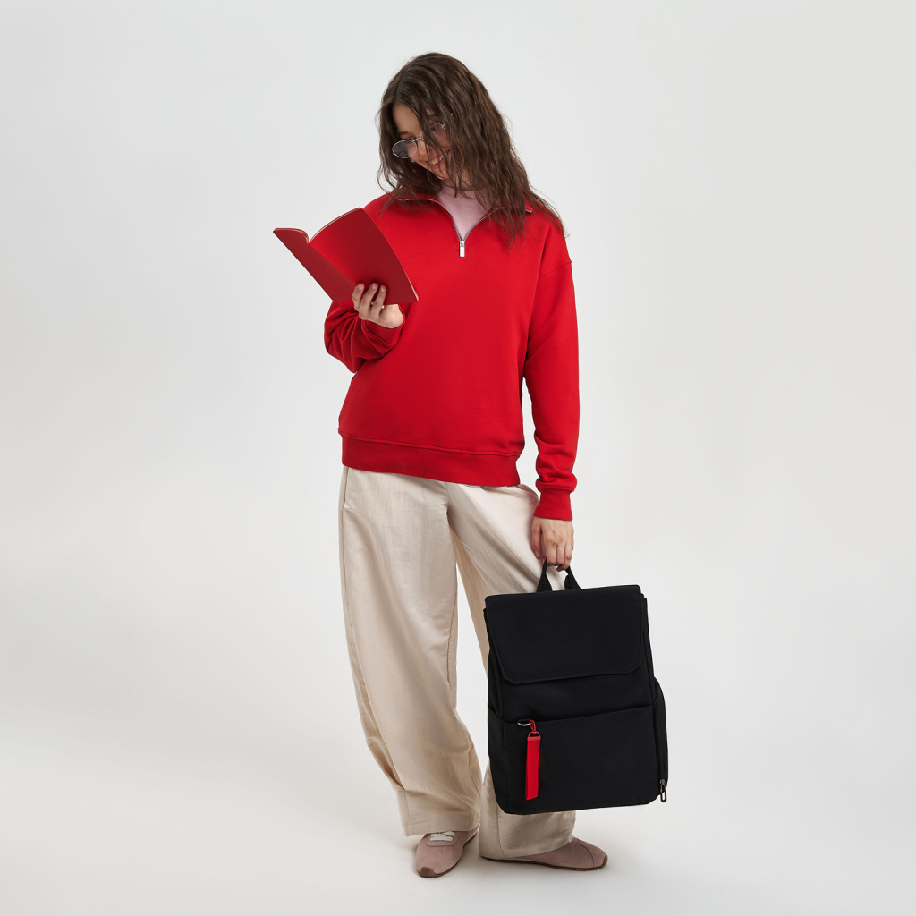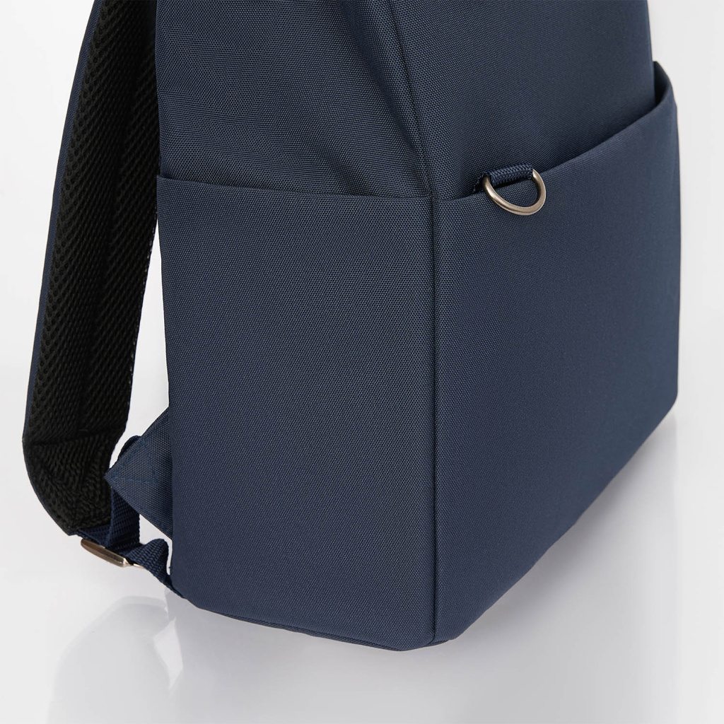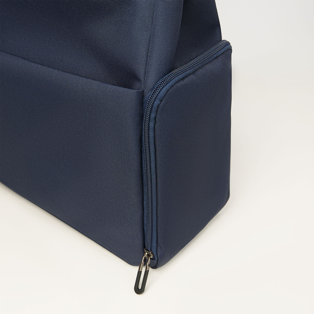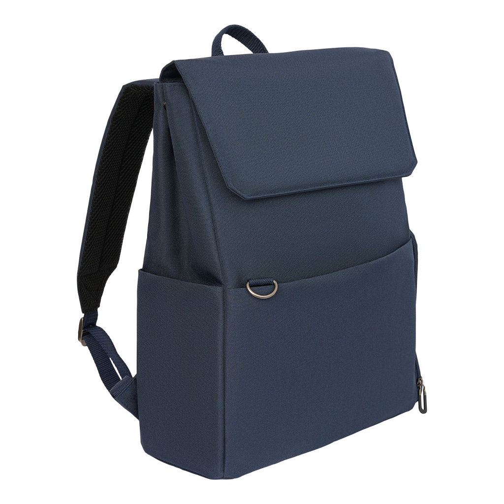 Основное отделение вмещает ноутбук до 15,6 дюймов в уплотненном кармане с фиксирующим ремнем на липучке. Внутри основного отделения есть карман для фиксации пластиковой бутылки или небольшого термоса. Боковые карманы разного типа — один объемный на молнии, второй плоский — позволяют удобно разместить все необходимые вещи.