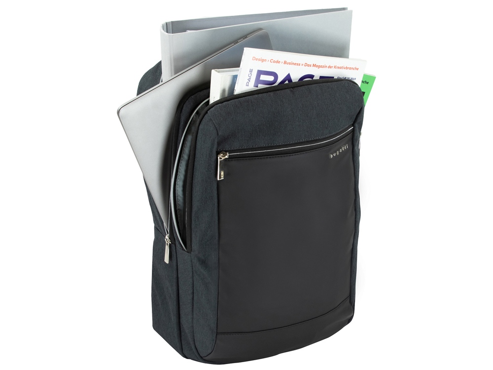 Внешняя организация: передний карман на молнии с защитой данных RFID, задний потайной карман на молнии, верхняя ручка высотой 6 см, ремень для соединения с телескопической ручкой чемодана, 2 мягких регулируемых плечевых ремня (до 185 см)