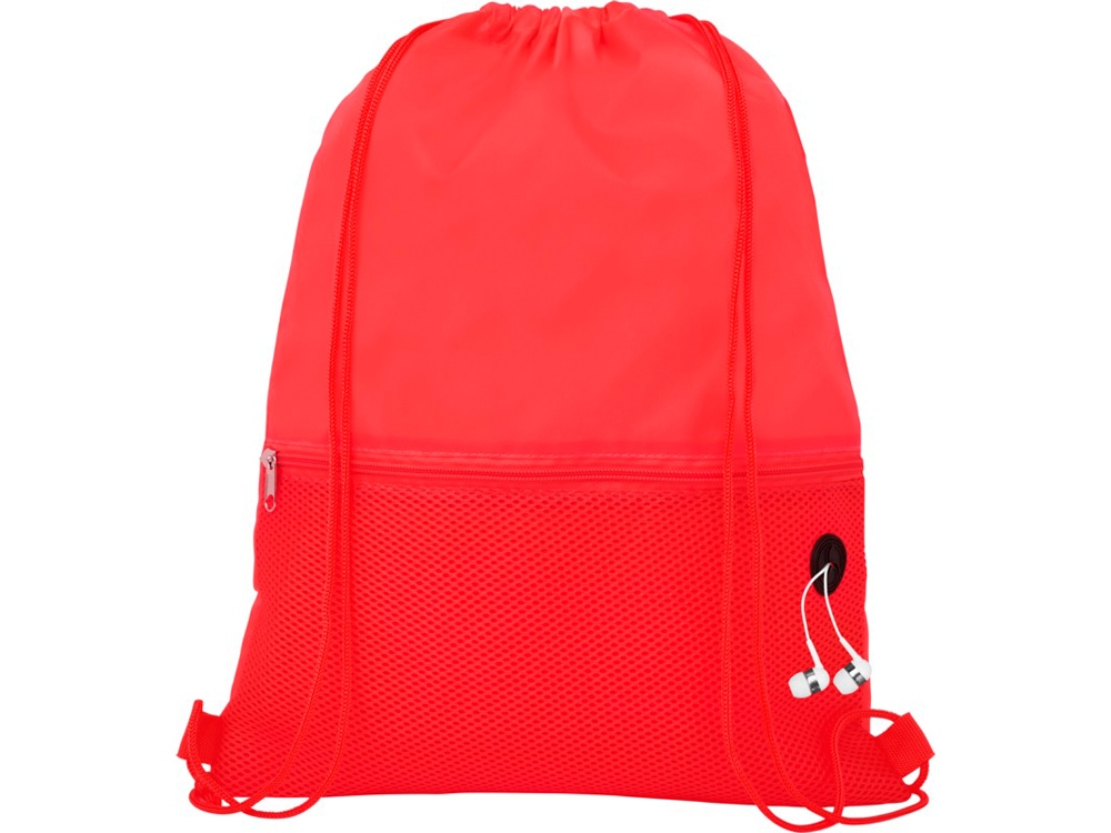 Рюкзак со шнурком и главным отделением на шнуровке в цвет изделия. Имеет один передний сетчатый карман на молнии и порт для наушников. Прочность до 5 кг. -
