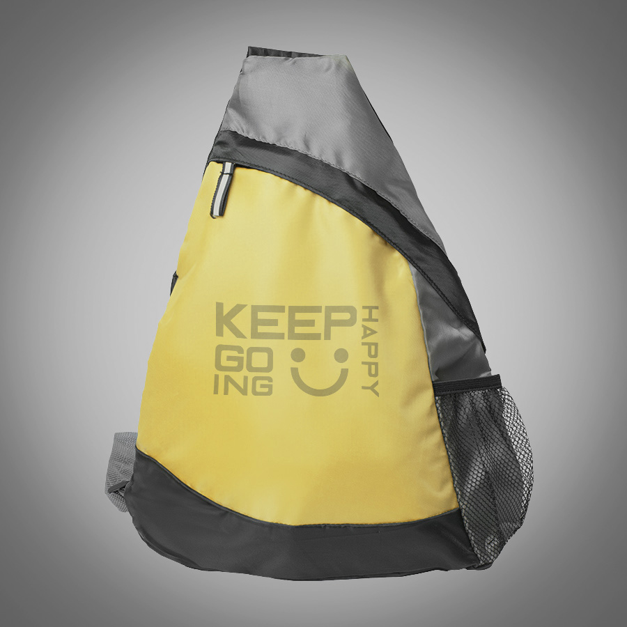Рюкзак с ремнем слинг.Основное отделение на молнии с пуллером с отражающей поверхностью. Боковой сетчатый карман. Регулируемый усиленный плечевой ремень.Ткань: полиэстер 210D.Объём: 8 литров. -