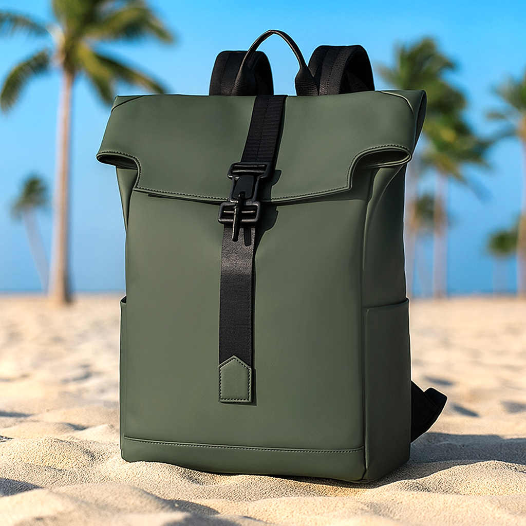 Стильный ролл-топ рюкзак SAFARI. Его особенности - сочетание с высококачественной искусственной кожи с бархатистым на ощупь микрофибровым покрытием с инновационными элементами. Одно большое отделение закрывается супер-технологичной магнитной пряжкой на регулируемый по длине ремень. Внутри уплотнённый карман для ноутбука до 15,6 дюймов и карман на молнии для мелочей и ЭКСКЛЮЗИВНАЯ ОПЦИЯ - специальный карман-сетка ДЛЯ АРОМАСАШЕ. На передней стенке один большой скрытый карман на молнии. Два открытых кармана по бокам рюкзака позволяют разместить всё необходимое и существенно расширяют функционал и вместимость рюкзака. Инновационная технология структуры широких регулируемых по длине плечевых ремней обеспечивает максимальный комфорт и предотвращает скольжение. Уплотнённая задняя стенкя распределяет вес и снижает нагрузку на позвоночник, а специальная накладка для чемодана и карман на молнии делают этот рюкзак незаменимым спутником для путешествий. Короткая ручка укреплена накладкой из искусственной кожи для максимального комфорта рук. Размер: 45*32*16 см Материал: Искуственная кожа Рекомендуемая максимальная нагрузка: не более 8 кг. Вместимость: 18 л. Вес: кг- Виды нанесений: Гравировка-А3 (оптоволоконный лазер), Установка Шильды