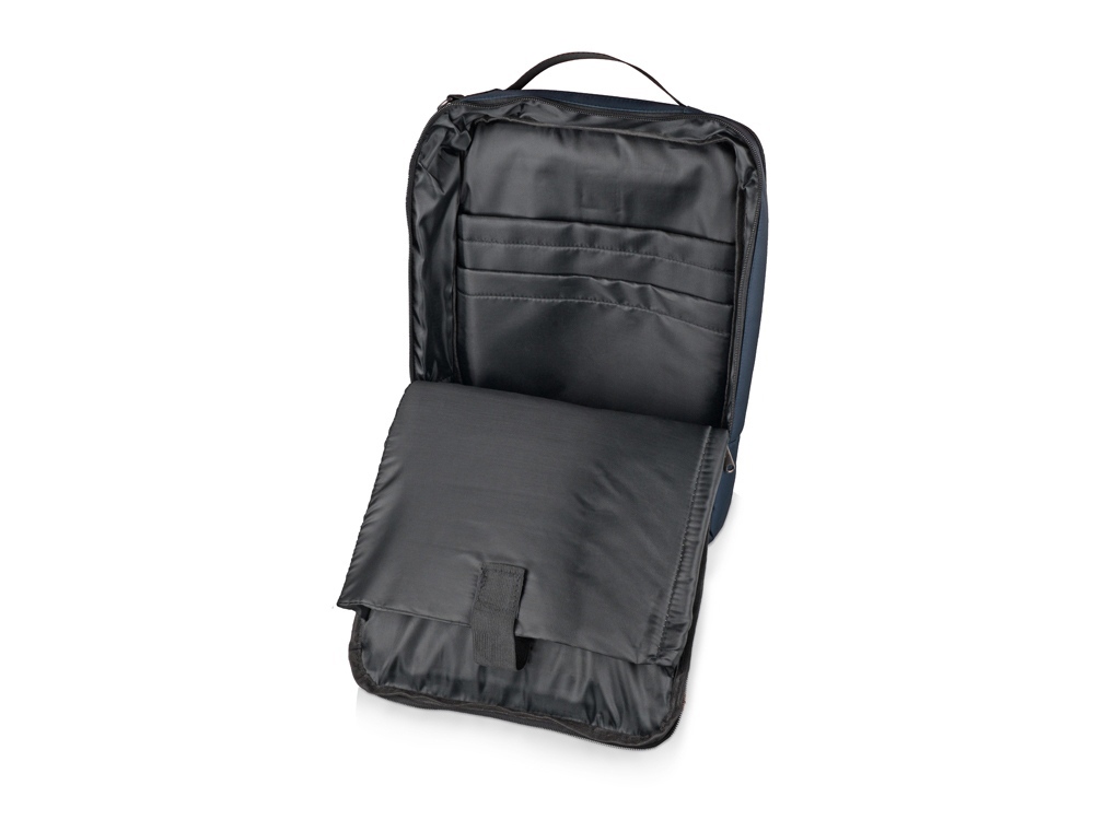 Благодаря отстегивающимся лямкам рюкзак легко трансформируется в сумку-портфель, которую можно повесить на плечо или взять за боковую ручку. Рюкзак оснащен множеством карманов для аксессуаров и мелочей. Рюкзак-трансформер Duty изготовлен из полиэстера и полиуретана с мягкой подкладкой, поэтому можно быть уверенным, что документы не помнутся, а гаджеты не поцарапаются и не разобьются. Еще одна особенность бизнес-рюкзака - это большая поверхность для нанесения. -