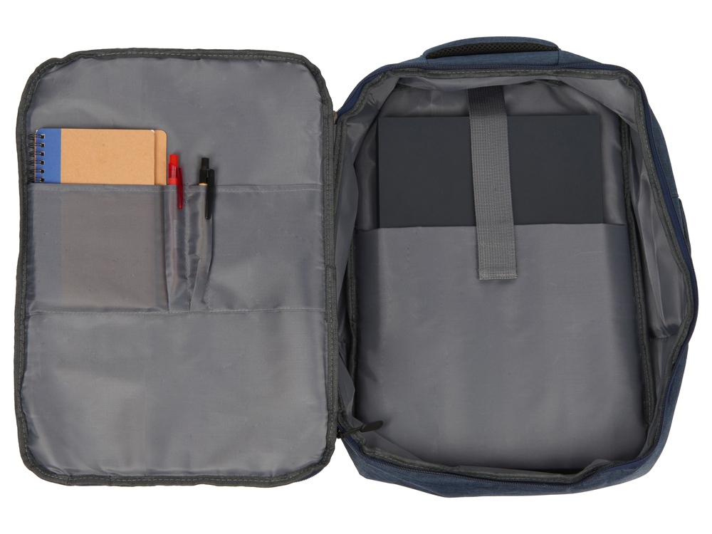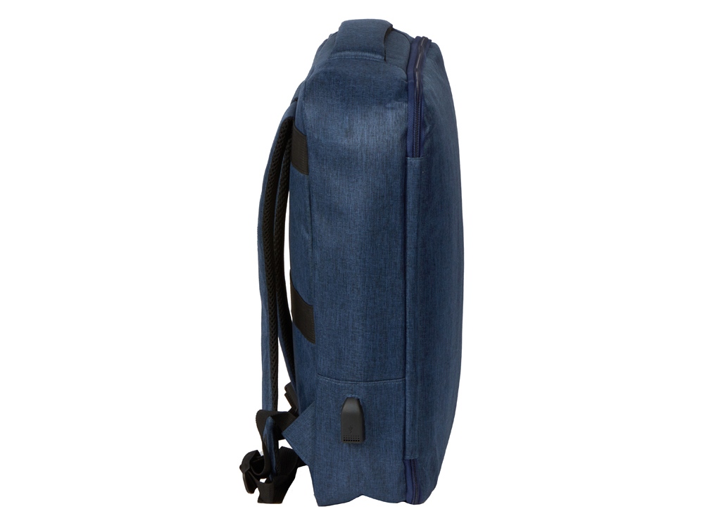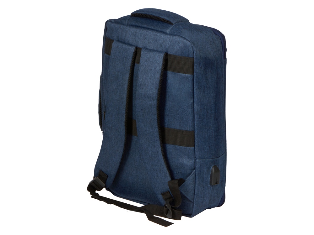 Легкий, удобный и вместительный в деловых поездках. Рюкзак трансформируется в деловую сумку благодаря второй ручке. Основное отделение с органайзером имеет глубину 11 см, что позволяет хранить в нем одежду и все необходимое для командировок. Для большего удобства рюкзак оснащен USB выходом и ремнем для крепления к чемодану. Лямки регулируются по длине. -
