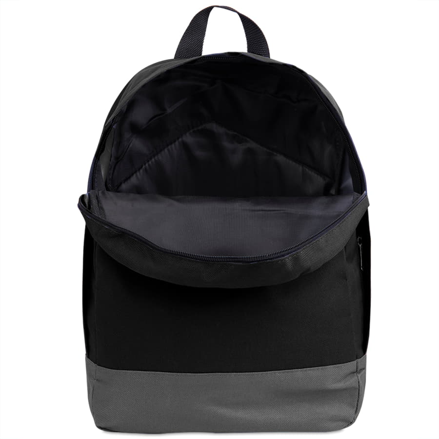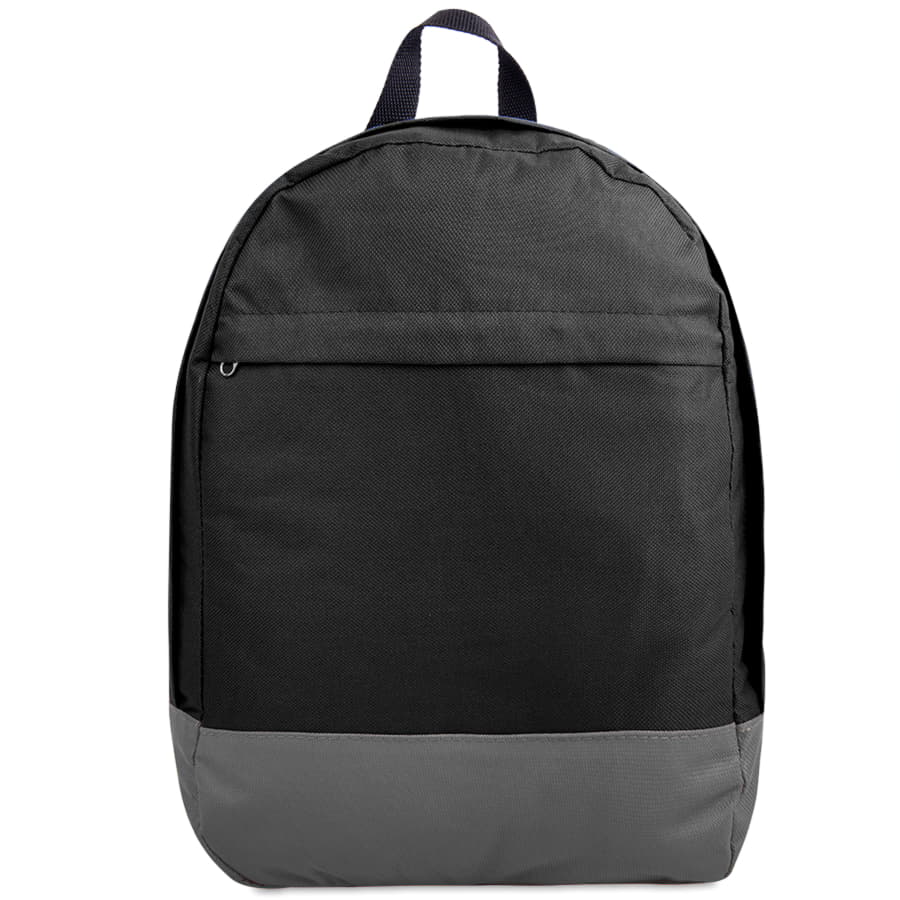 Промо рюкзак из оксфорда плотностью 600D с контрастным дномЗакрытый внешний карман на молнии на передней частиОдно основное отделение на молнии с 2-мя собачкамиМягкие регулируемые лямки и усиленная спинка с поролономОбъём в районе 10 литровВыдержит вес 15 кг -