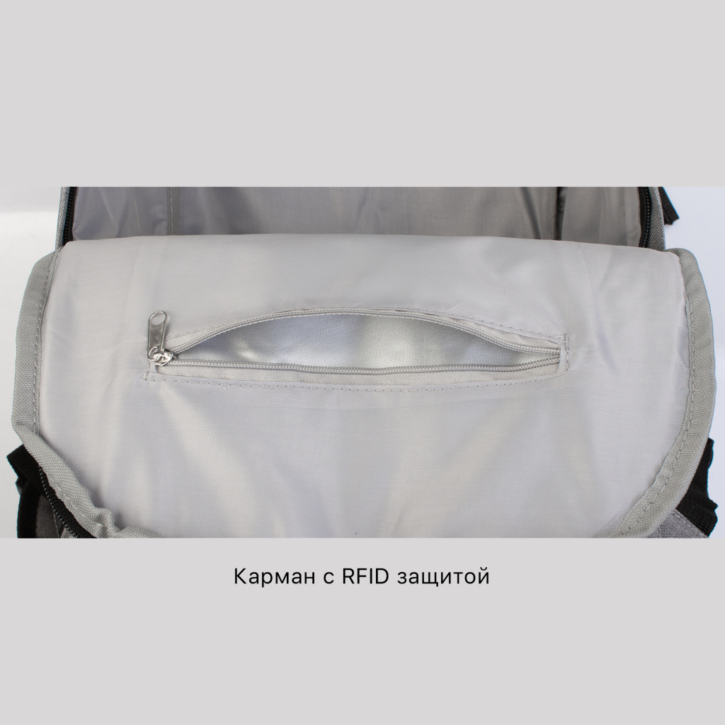 Достаточный объём и несколько отделений рюкзака позволят вместить всё самое необходимое. Основной материал - полиэстер плотностью 600 D хорошо держит форму и устойчив к сминанию. Прорезиненная подложка надежно защищает содержимое от влаги. Есть внешний карман на молнии, карман-сетка с боковой стороны и выход для проводов с противоположной стороны. Основное отделение имеет скрытую молнию и внутри – карман с RFID-защитой. Внутренний подклад – серого цвета.