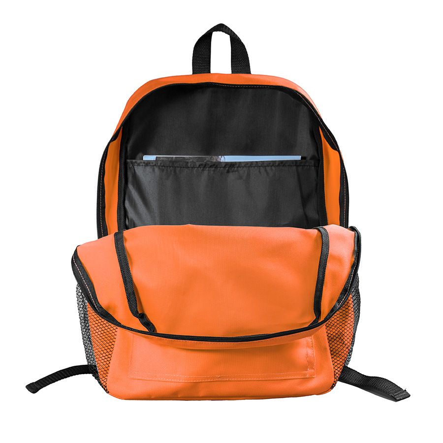Рюкзак из прочного полиэстера 600D с застежкой-молнией и передним карманом, усиленными углами, пуллерами черного цвета. Мягкая спинка, регулируемые плечевые лямки. -