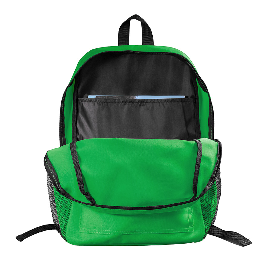 Рюкзак из прочного полиэстера 600D с застежкой-молнией и передним карманом, усиленными углами, пуллерами черного цвета. Мягкая спинка, регулируемые плечевые лямки. -