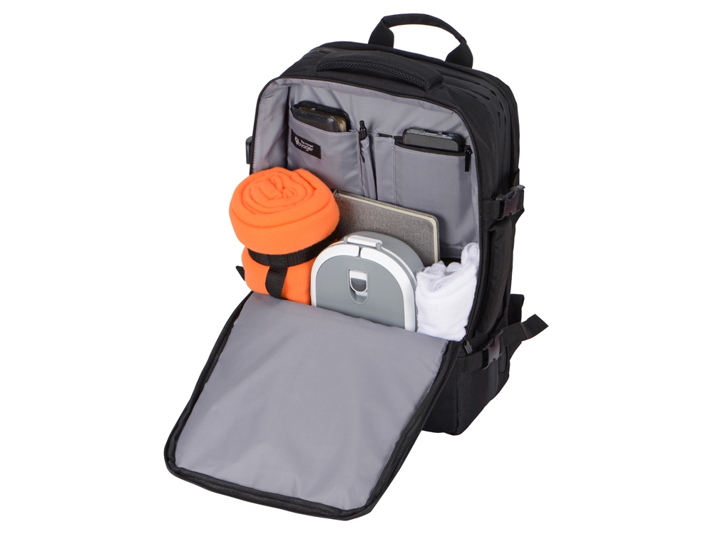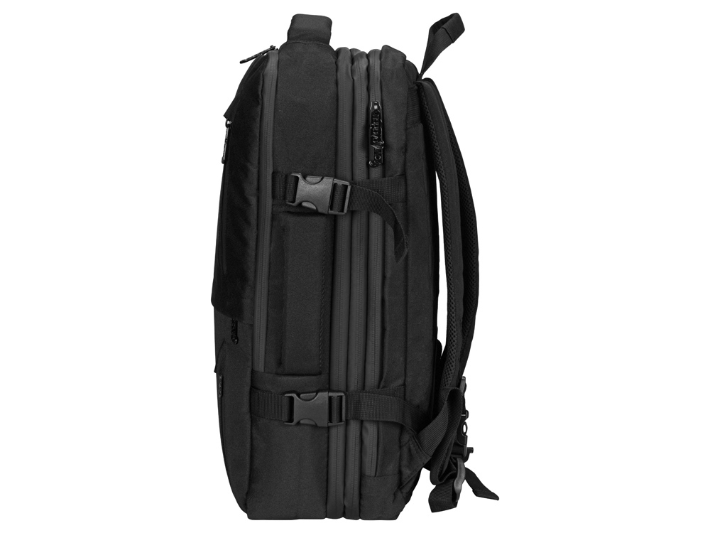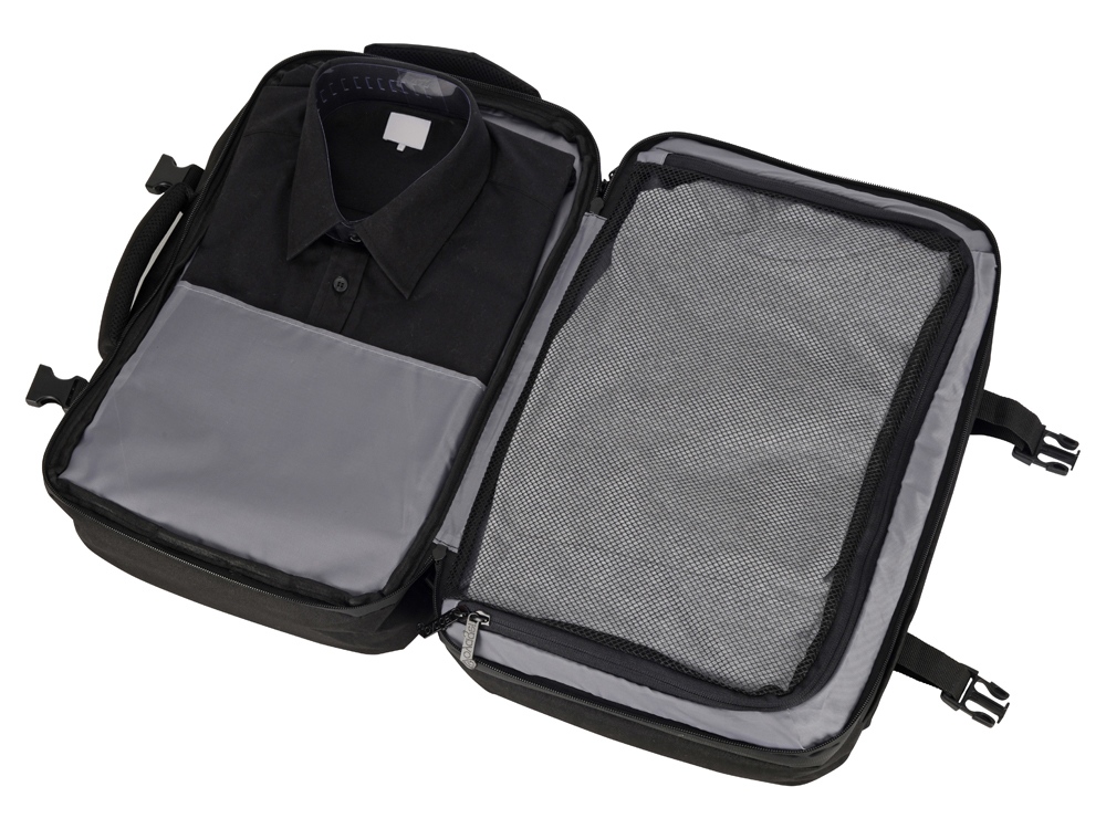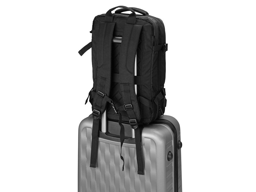 Идеальное решение для деловых поездок и путешествий в любую погоду - поместится все необходимое - от планшета и ноутбука до личных вещей и одежды. С рюкзаком можно ездить в любую погоду, потому что он изготовлен из водостойкого материала и снабжен водонепроницаемыми молниями. С помощью 4-х боковых фиксаторов вместительный рюкзак трансформируется в компактную сумку.