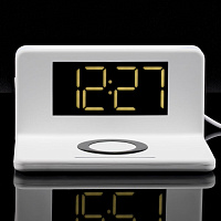 Часы настольные с беспроводным зарядным устройством Pitstop, белые