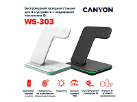 Беспроводное зарядное устройство для гаджетов 3-в-1 с технологией QI WS-303, 15 Вт