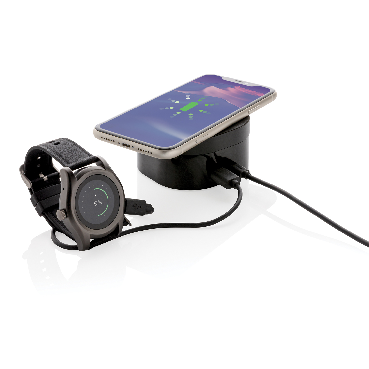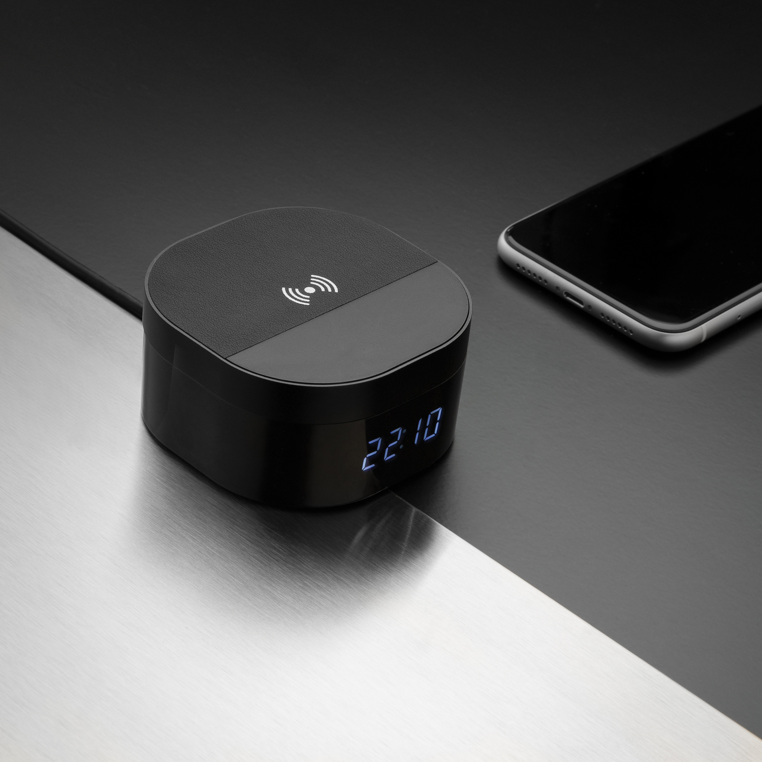 Функциональность и скандинавский стиль воплотились в нашей новой беспроводной док-станции Aria со встроенными цифровыми часами. Благодаря своему дизайну док-станция будет прекрасно смотреться как на вашем рабочем месте, так и на прикроватной тумбочке. Корпус устройства изготовлен из прочного алюминия и полиуретана. В комплекте идет Micro-USB кабель длиной 1,5 метра. Подходит для зарядки любых мобильных девайсов, поддерживающих стандарт Qi*, таких как Android последнего поколения, iPhone 8 и выше. Входное напряжение: 5V / 2A. Беспроводное выходное напряжение: 5V / 1A.