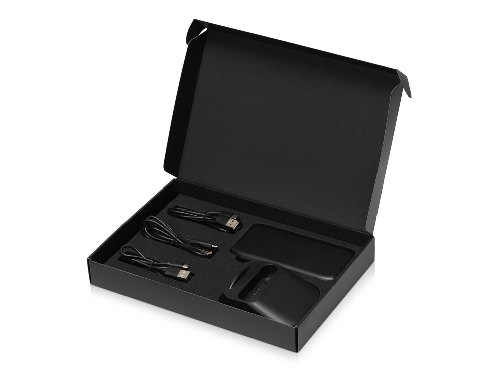 Универсальный беспроводной внешний аккумулятор с зарядной станцией. Главное преимущество – удобство использования. Подключите зарядную станцию к порту USB и установите повербанк стороной со значком беспроводной зарядки к себе (значок находится около USB разъемов). В таком положении повербанк заряжается сам, а также может заряжать и смартфон. Техническая особенность гаджета заключается в наличии сразу 2 индукционных катушек (модулей беспроводной зарядки). Смартфон можно заряжать беспроводным способом в любом положении - как горизонтально, так и вертикально! Если Вы хотите взять повербанк с собой, просто достаньте его из станции одним движением. Повербанк может заряжать одновременно 3 устройства (2 USB разъема + беспроводная зарядка). Чтобы зарядить повербанк традиционным способом без станции - в комплекте имеются кабели USB-C и micro USB. Обе стороны повербанка подходят для печати больших нанесений. Также нанесение логотипа возможно на зарядной станции.