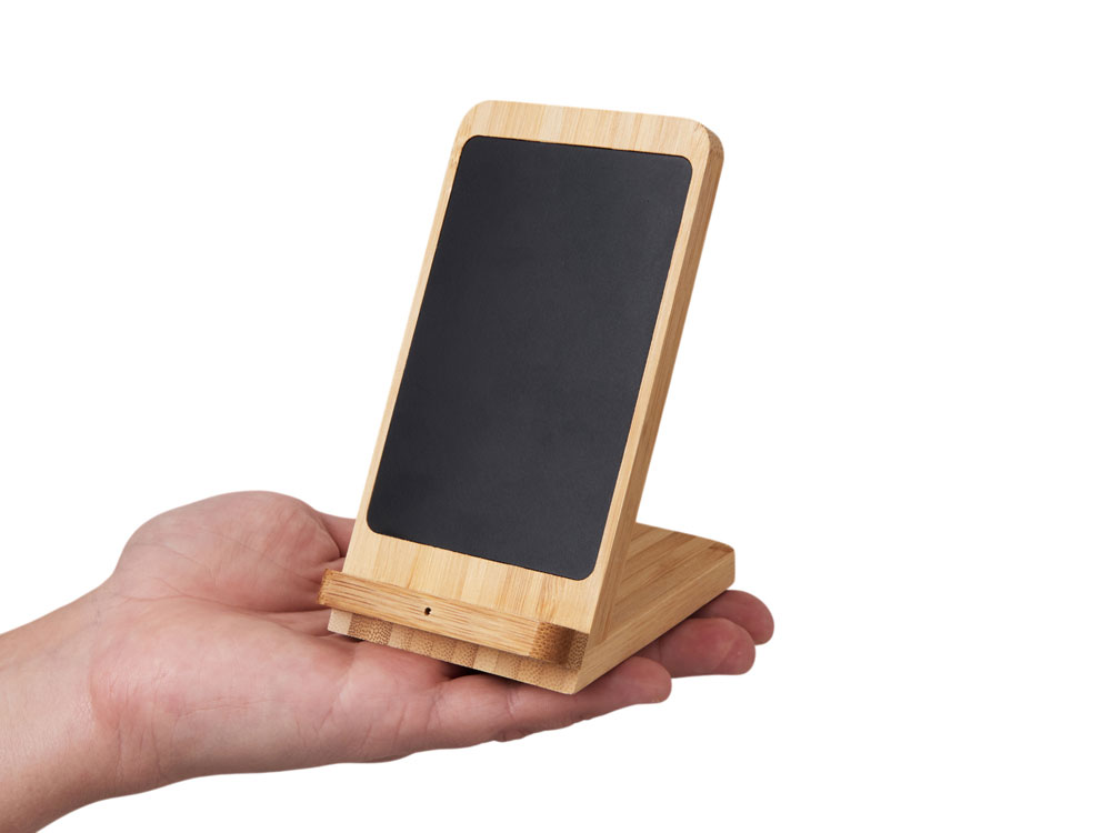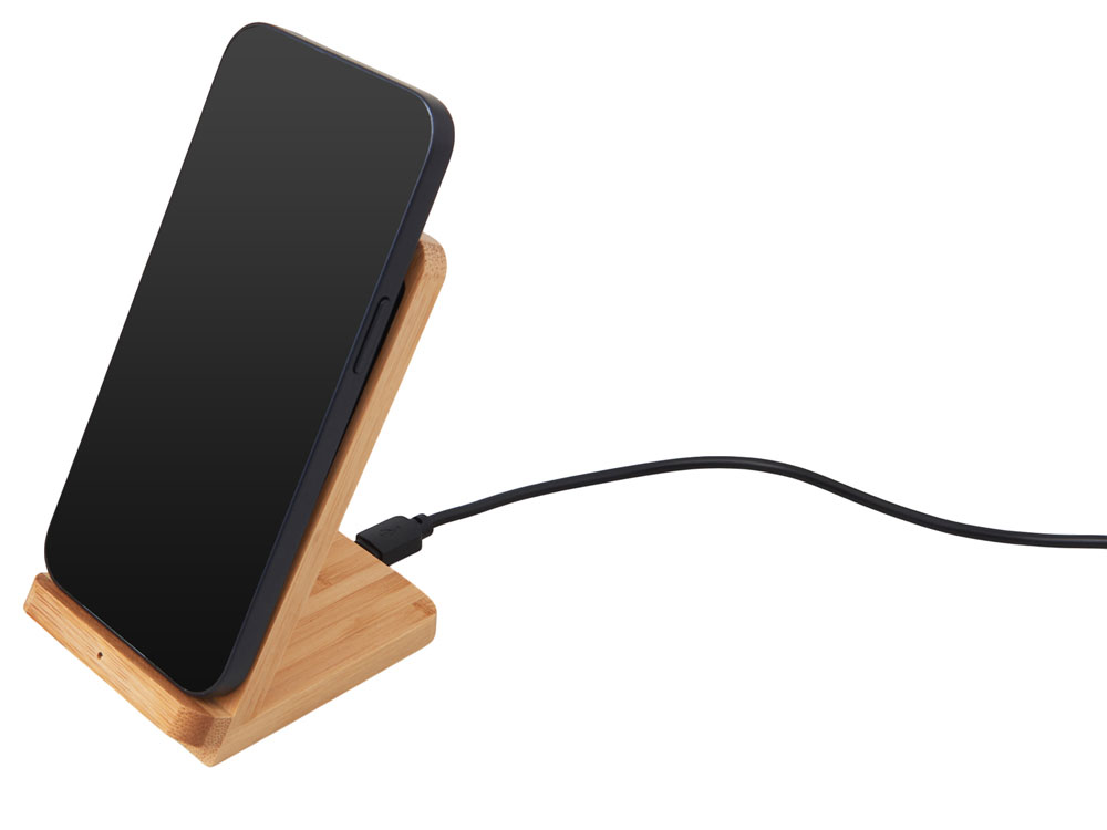 Знакомьтесь с инновационным беспроводным зарядным устройством на 15 Вт — созданным для комфорта, стиля и экологичного образа жизни. Его корпус сочетает натуральный бамбук и переработанный ABS-пластик, даря не только приятную на ощупь текстуру, но и выражая вашу заботу об окружающей среде. Уникальная конструкция с двумя центрами зарядки позволяет заряжать смартфон как в вертикальном, так и в горизонтальном положении — идеально для просмотра видео, видеозвонков или навигации во время зарядки. А встроенная белая подсветка с возможностью нанесения логотипа превращает зарядку в персонализированный аксессуар: ваш бренд или имя мягко светится, добавляя атмосферу уюта и премиальности.