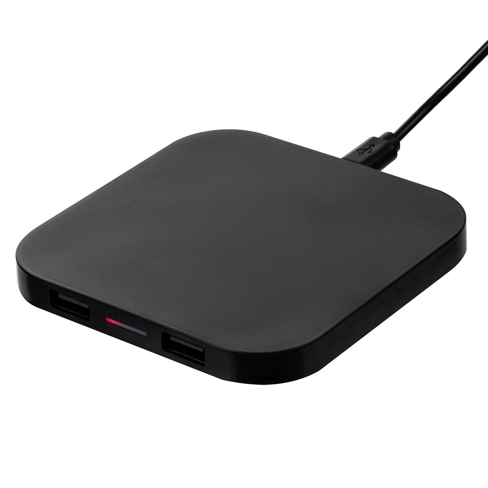 При подключении к внешнему сетевому адаптеру светодиодный индикатор мигнет два раза: устройство Interra Plus готово к размещению на верхней части корпуса смартфона с поддержкой беспроводной зарядки.- Модуль беспроводной зарядки и 2 порта USB