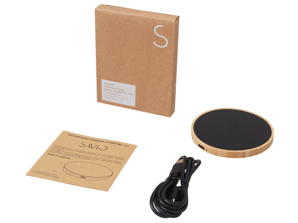 Заряжайте устройства с элегантностью и заботой о планете — с беспроводным зарядным устройством на 15 Вт, выполненным из натурального бамбука и переработанного ABS-пластика. Это не просто функциональный гаджет, а стильный элемент интерьера, который органично впишется в ваш дом, офис или коворкинг. Благодаря поддержке быстрой беспроводной зарядки до 15 Вт, ваш смартфон восполняет энергию без лишних проводов и суеты. А встроенная белая подсветка логотипа добавляет изюминку: ваш бренд или инициалы мягко светятся при зарядке, создавая атмосферу уюта и индивидуальности. Идеальный выбор для тех, кто ценит экологичность, технологии и эстетику.