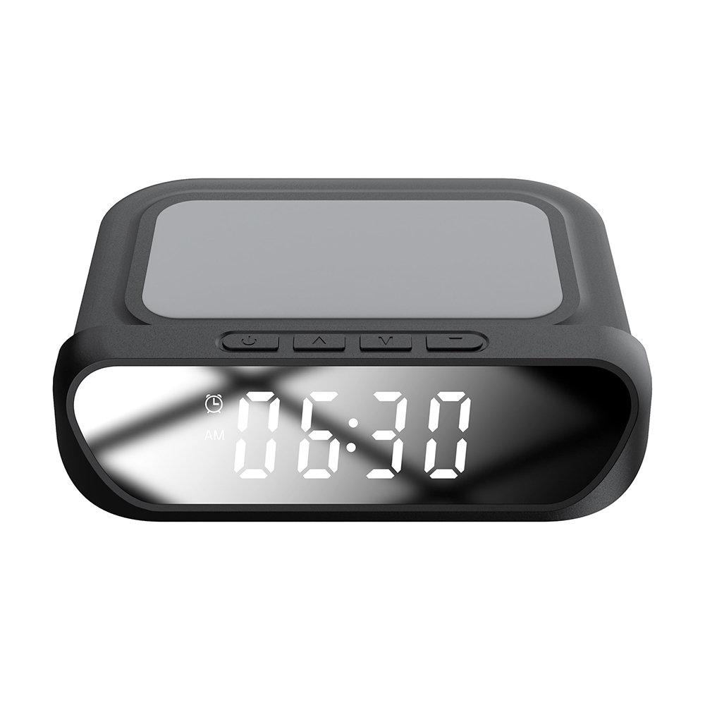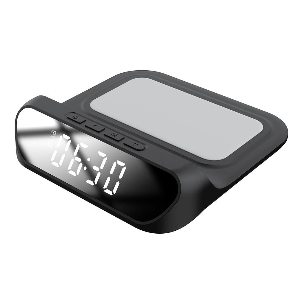 Многофункциональные часы 3в1: беспроводная зарядка 15W, часы, будильник Входное напряжение и ток:9v-1.6A/5V-2A Выходное напряжение и ток:9v-1.6A/5V-2A Мощность зарядки:15W Расстояние срабатывания зарядного:5-7MM. Для работы беспроводной зарядки необходимо подключать устройство к сети через адаптер. Область зарядки смартфона поддерживает все Android/Ios устройства с функцией беспроводной зарядки.- Виды нанесений: УФ-печать А2, Тампопечать, УФ-Лак, УФ-Цвет+Лак