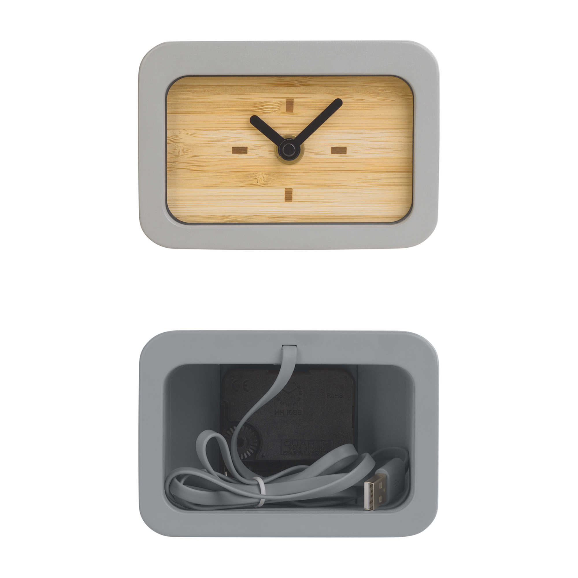 Часы работают от батарейки типа АА, мобильный формат позволяет переносить и размещать их в любом удобном месте. Для активации функции беспроводного заряда необходимо подключить часы к источнику питания с помощью встроенного кабеля USB.