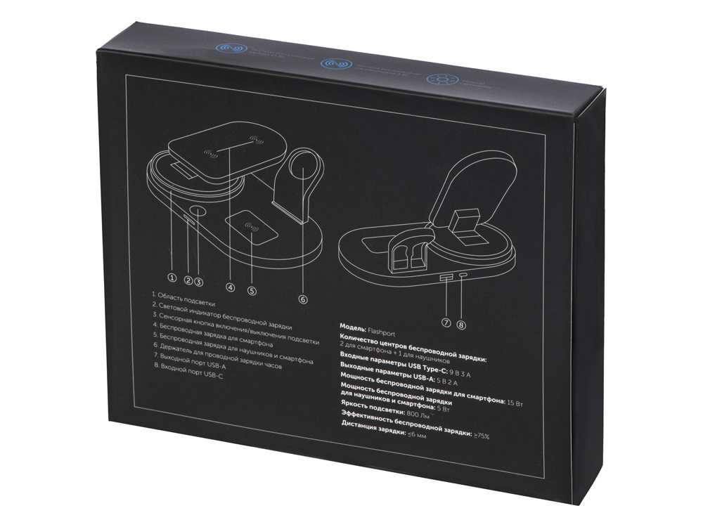 Складная зарядная станция с беспроводной зарядкой Flashport, 15 Вт