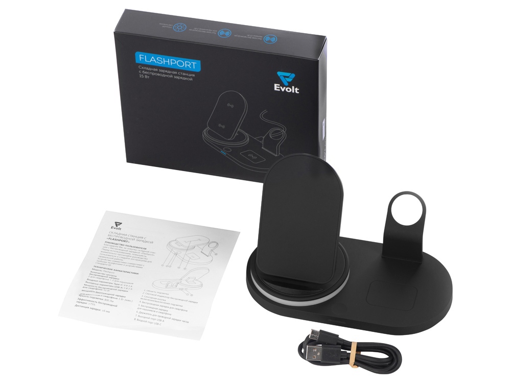 Складная зарядная станция с беспроводной зарядкой Flashport, 15 Вт