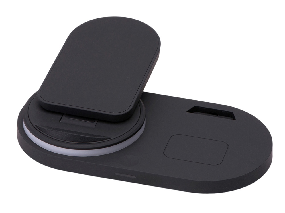 Flashport от Evolt - это складная зарядная станция с беспроводной зарядкой для телефона и наушников. В комплекте также идет подставка под зарядку для наручных смарт-часов. На регулируемой панели зарядки смартфона расположены 2 катушки (2 центра беспроводной зарядки), которые позволяют заряжать ваш девайс как в вертикальном, так и горизонтальном положении. Беспроводная зарядка для наушников мощностью 5 Вт подходит для зарядки не только беспроводных наушников, но и второго смартфона. Чтобы включить встроенную лампу, нажмите сенсорную кнопку 1 раз. Для плавного изменения яркости света нажмите и удерживайте сенсорную кнопку при включенной лампе. Кабель 100 см в комплекте.