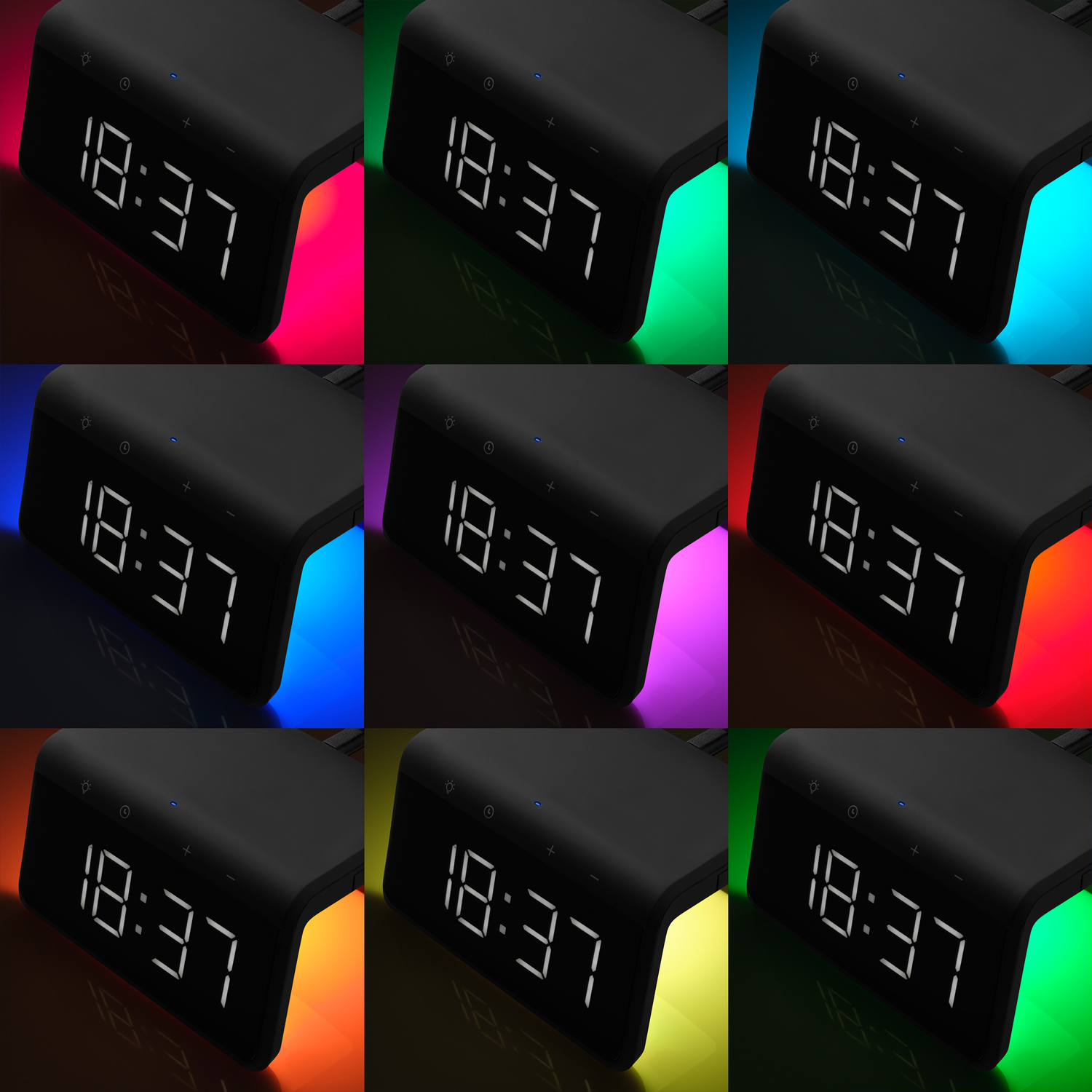Настольные часы Flame с беспроводной зарядкой и цветной подсветкой - эксклюзивная модель Portobello.