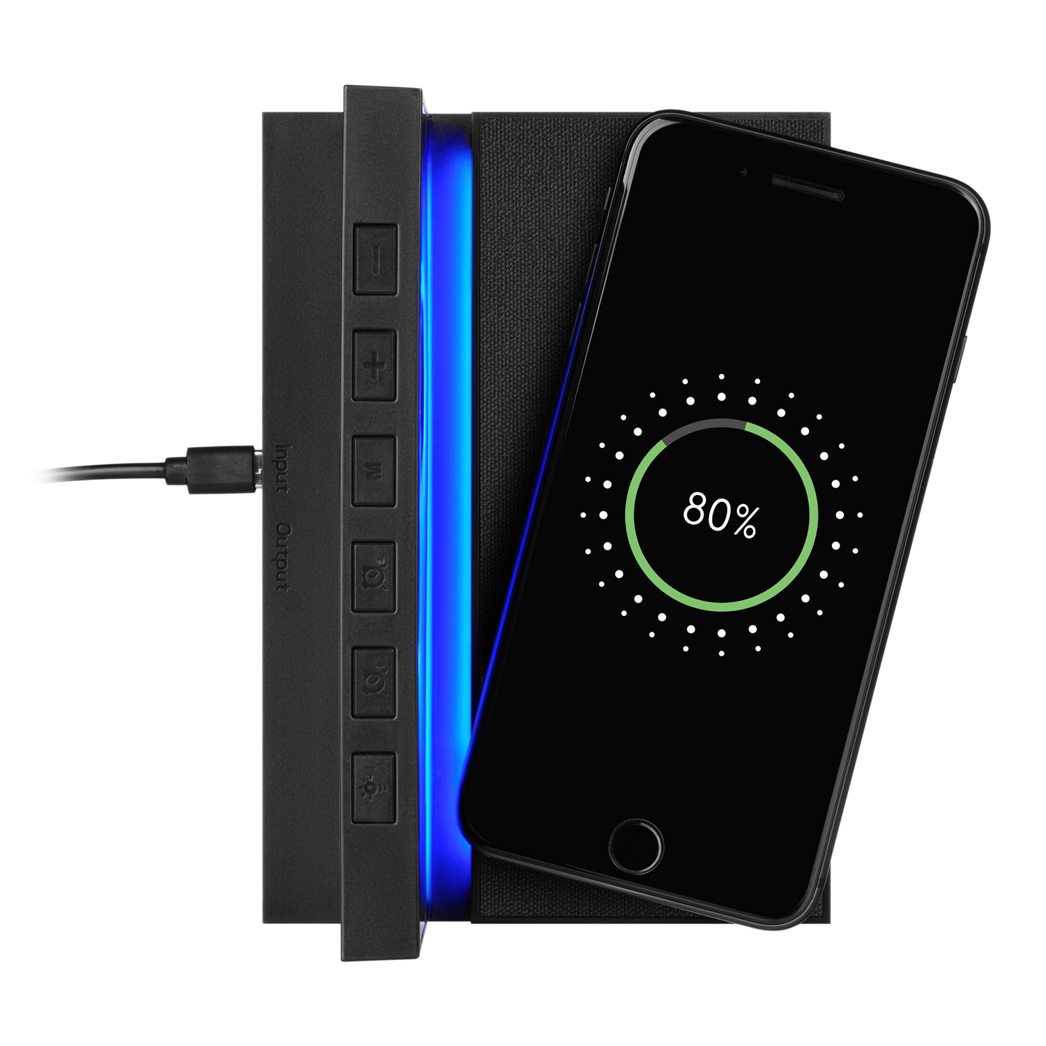 Для поддержки одновременной работы беспроводной зарядки смартфона + проводной USB зарядки + часов/будильника + подсветки - адаптер с быстрой зарядкой QC 3.0.